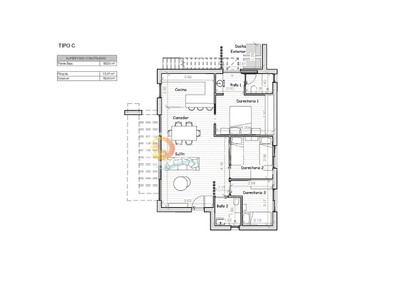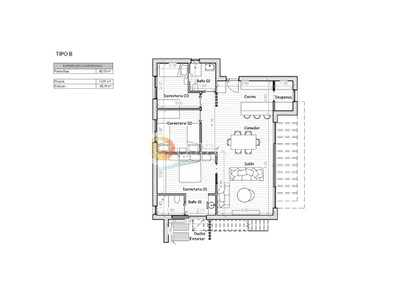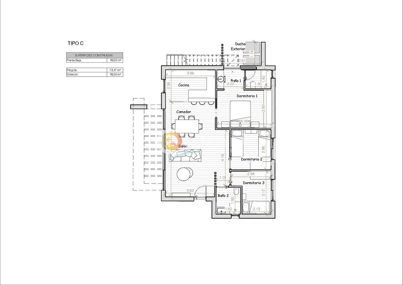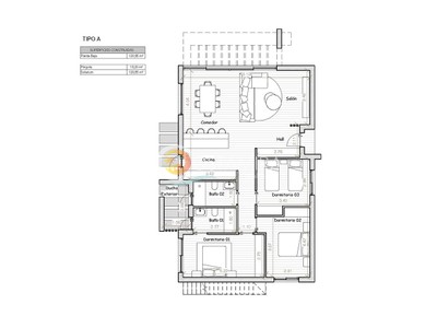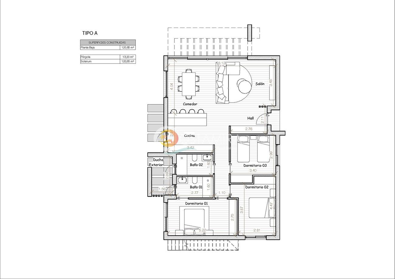 Existen tres tipos diferentes de chalet a elegir, que varían entre los 90 y los 121 m2 construidos, sobre parcelas que van desde los 237 m2 a los 280 m2, todos cuentan con 3 habitaciones y 2 baños, salón comedor con cocina de concepto abierto, un bonito porche delantero con vistas al jardín y a la piscina privada y también solárium (opcional).