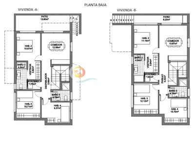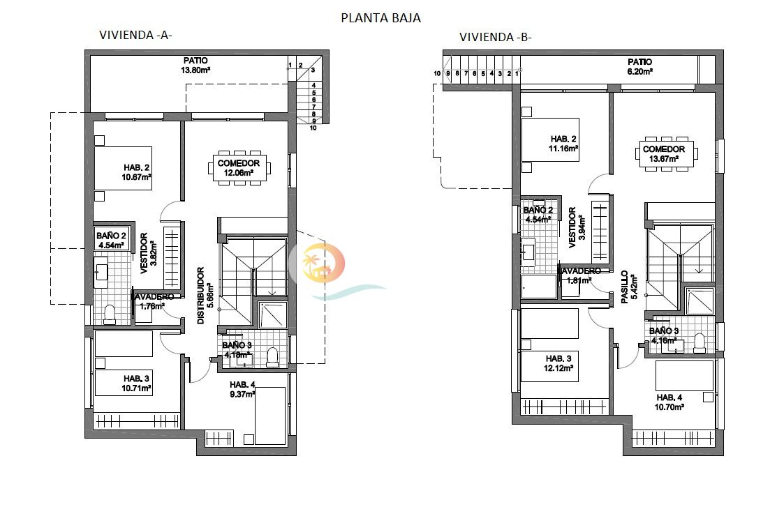 Estas villas disponen de un total de 4 habitaciones y 4 baños, dos de las habitaciones con baño en suite y habitación principal con vestidor propio, gran salón comedor con cocina de concepto abierto e isla central, una bonita terraza cubierta, patio trasero, lavadero,en planta baja, otro salón en primera planta, una amplia terraza y solárium.